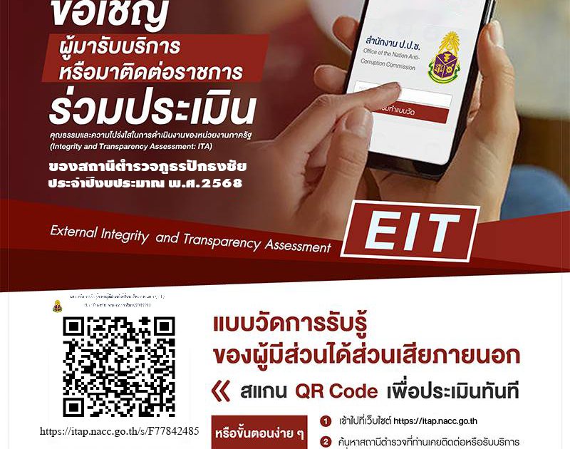 เชิญร่วมประเมินแบบวัดการรับรู้ผู้มีส่วนได้ส่วนเสียภายนอก EIT ปี 2568 1 มกราคม 2568 โดย admin / ข่าวประชาสัมพันธ์ https://itap.nacc.go.th/s/F94982254 Facebook iconFacebookTwitter iconTwitterLINE iconLine
