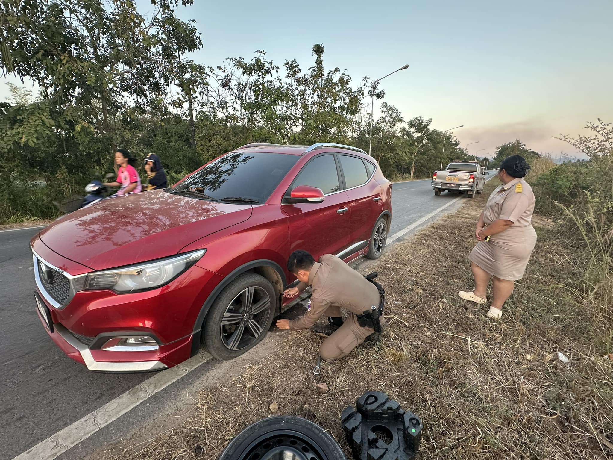 ตำรวจ สภ.เหล่าหลวง ช่วยเหลือประชาชนรถยางรั่ว