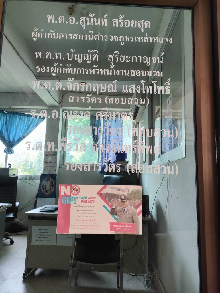 ประกาศสถานีตำรวจภูธรเหล่าหลวง no gift ภาษาอัง