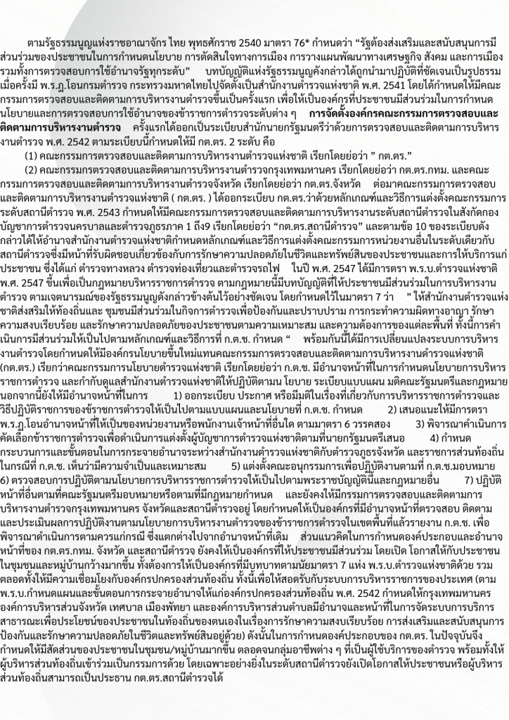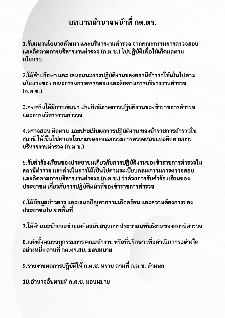 บทบาท อำนาจหน้าที่ของคณะกรรมการตรวจสอบและติดตามการบริหารงานตำรวจ (กต.ตร.) ของสถานีตำรวจ